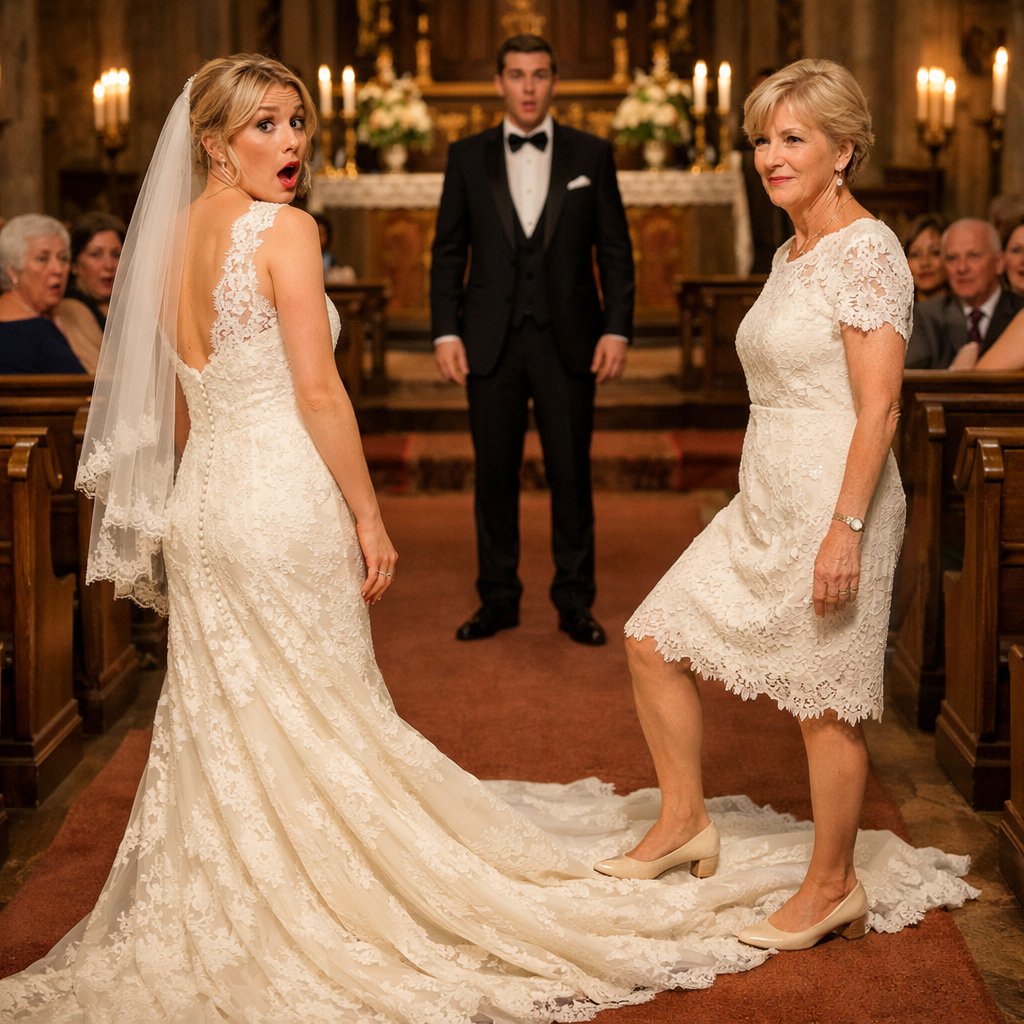 Та я стояла біля вівтаря в маминій старій сукні, пожовклій від часу, з легким запахом картону й шафи, і відчувала, як у мене під грудьми стискається приниження. Це не мала бути моя сукня. Моя сукня — шовк, глибокий виріз, мереживо, яке я вибирала годинами — мала бути сьогодні на мені. Але шість днів тому дизайнерка подзвонила мені зі сльозами: «Мені дуже шкода, Софіє… заможна клієнтка оплатили терміновий VIP-викуп. Я не змогла відмовити». Я тоді сіла просто на підлогу в студії, серед зразків тканин, і дивилася в одну точку. Мені хотілося кричати, але вийшов лише сухий видих. Я погодилася на мамину сукню, бо часу вже не було, а мені треба було врятувати хоча б вигляд.
