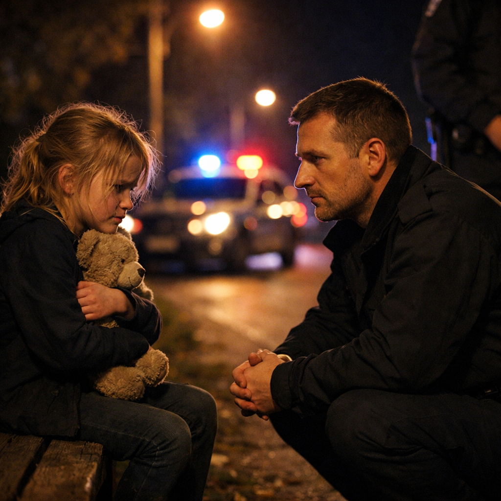 Близько дев’ятої вечора дорогою повільно рухався патрульний автомобіль. Офіцер Давид Романенко ніс звичайне чергування й спершу подумав, що під ліхтарем йому просто привиділося. Маленька постать на пустій зупинці в такий час здавалася чимось неможливим. Та коли він пригальмував і підійшов ближче, побачив зовсім не примару, а втомлену дитину в блакитній сукенці, яка тримала старого ведмедика так, ніби весь світ звузився до цієї іграшки. Давид одразу присів навпочіпки, щоб не налякати її своєю формою й зростом. — Привіт, сонечко. Я офіцер Романенко. Ти когось чекаєш? — Ліля підвела на нього великі очі. — Мій дідусь пішов по морозиво. Він сказав, щоб я сиділа тут, інакше поліція забере мене далеко. — У грудях Давида піднялася хвиля гніву, але голос залишився спокійним. — Я нікуди тебе не заберу без причини. Я просто хочу, щоб ти була в безпеці. Скільки ти вже тут сидиш? — Вона подумала й тихо відповіла: — Ще коли сонце було високо. Ці слова важко опустилися між ними, як остаточний доказ того, що перед ним не випадкове непорозуміння.